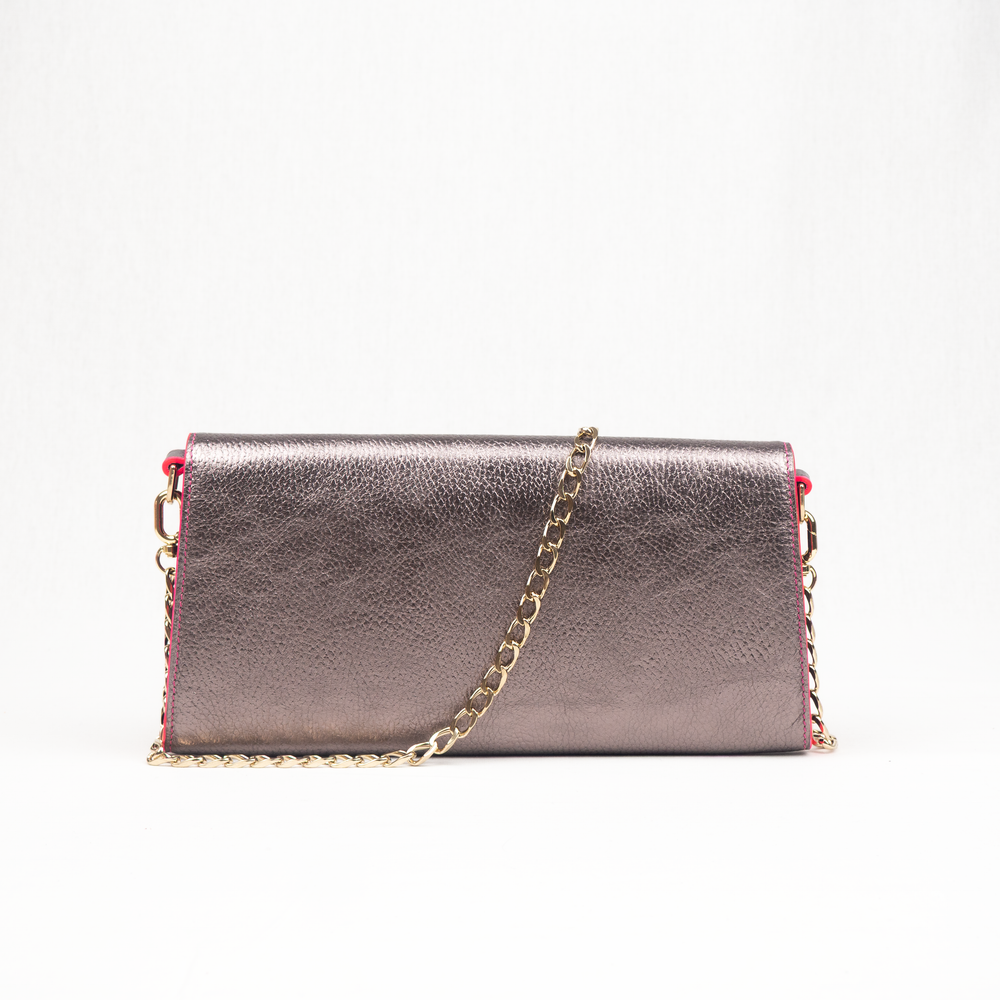 Simone was Britt’s cherished grandmother, known for her love of celebrations and genuine care for others. Created in her memory after her passing in Spring 2015, this clutch honors her warm spirit. Ideal for events, special occasions, or a stylish day in the city, it can be carried as a clutch or worn gracefully with its elegant oval-shaped chain.