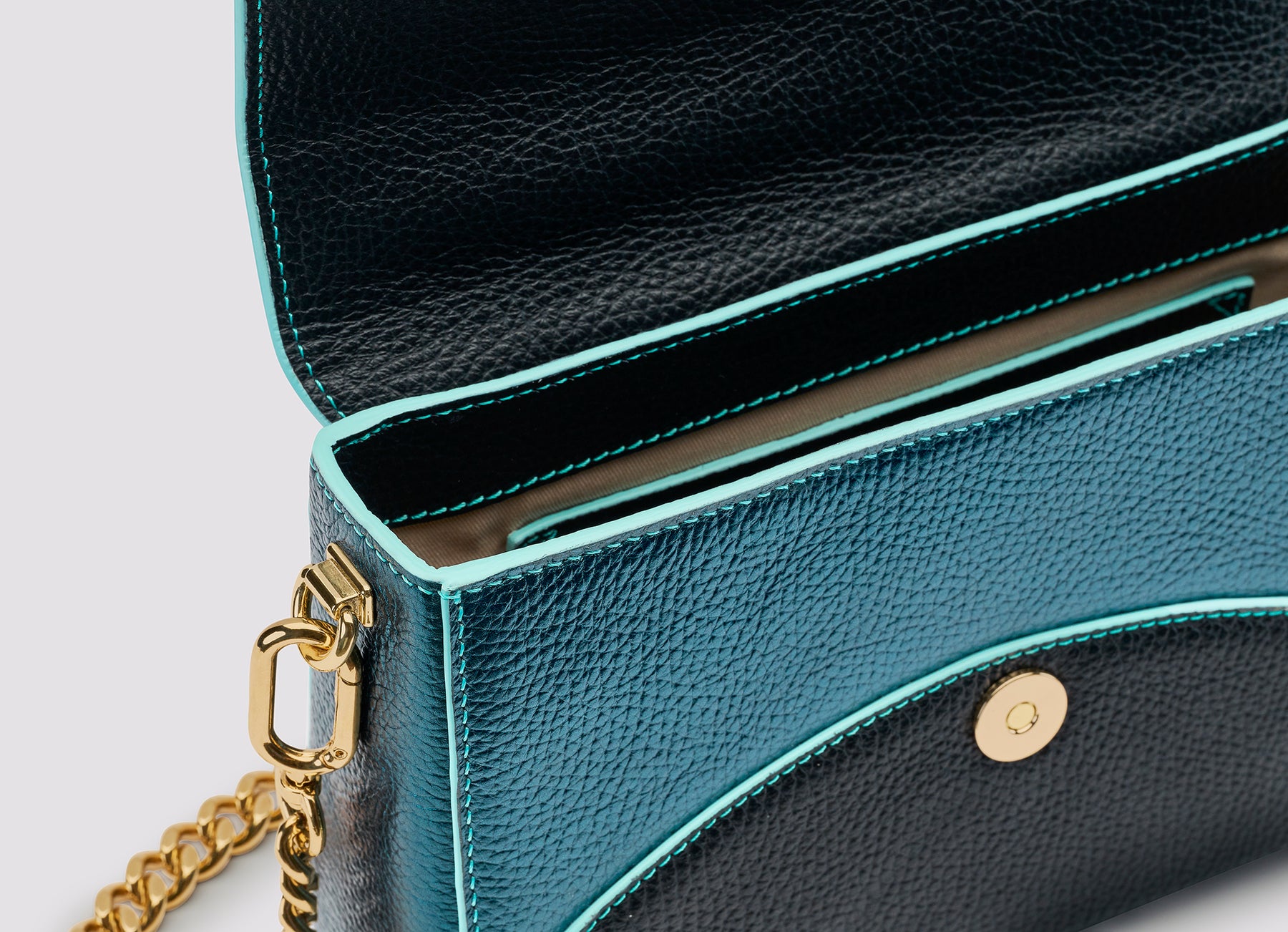 Clara vient du latin « clarus », qui signifie brillant et resplendissant. Avec ce sac raffiné, au coloris neutre aux accents fluo et métallisés, vous brillez aussi bien lors de vos activités quotidiennes que lors d’une sortie nocturne. Le sac Clara peut être porté en pochette, en bandoulière grâce à l’élégante bandoulière réglable ou avec une luxueuse chaîne pour un look plus festif.