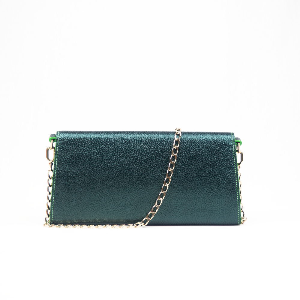 Simone was Britt’s cherished grandmother, known for her love of celebrations and genuine care for others. Created in her memory after her passing in Spring 2015, this clutch honors her warm spirit. Ideal for events, special occasions, or a stylish day in the city, it can be carried as a clutch or worn gracefully with its elegant oval-shaped chain.