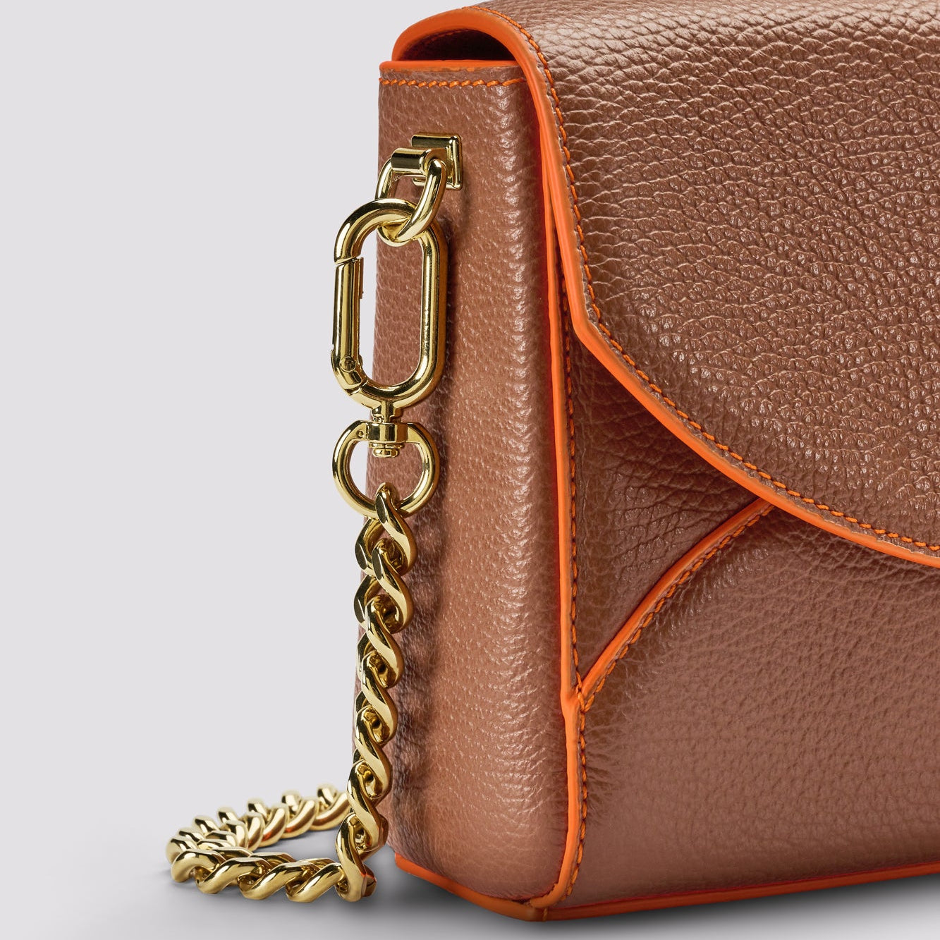 Catena betekent 'ketting' in het Italiaans en vormt met zijn goudkleurige ketting en haken in combinatie met een soepele comfortabele leren patch de perfecte mix van elegantie & comfort. Met de Catena tovert u uw Clara of Ella om tot een elegante schoudertas, ideaal voor een avondje uit of een feestelijke look.