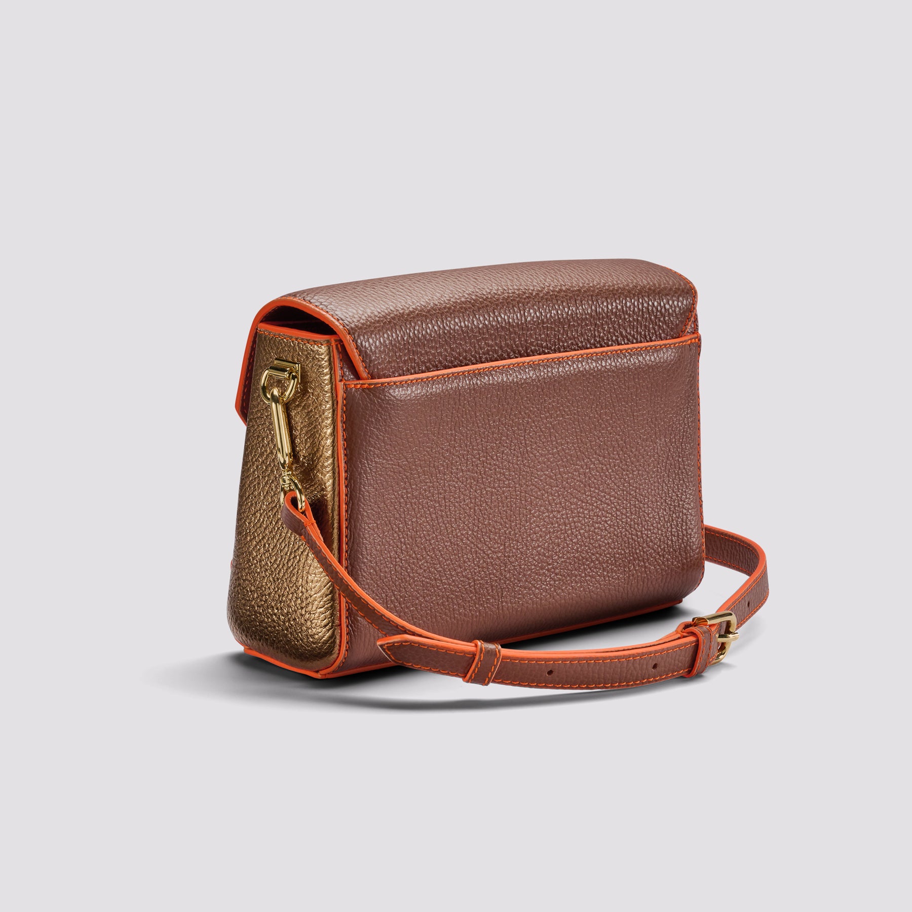 Clara komt van het Latijnse woord "clarus", wat stralend en schitterend betekent. Met deze verfijnde tas, in een neutrale kleur met neon en metallic accenten, schitter je zowel tijdens je dagelijkse bezigheden als tijdens een avondje uit. De Clara tas kan gedragen worden als clutch, crossbody dankzij de elegante verstelbare schouderband of met een luxe ketting voor een meer feestelijke look.