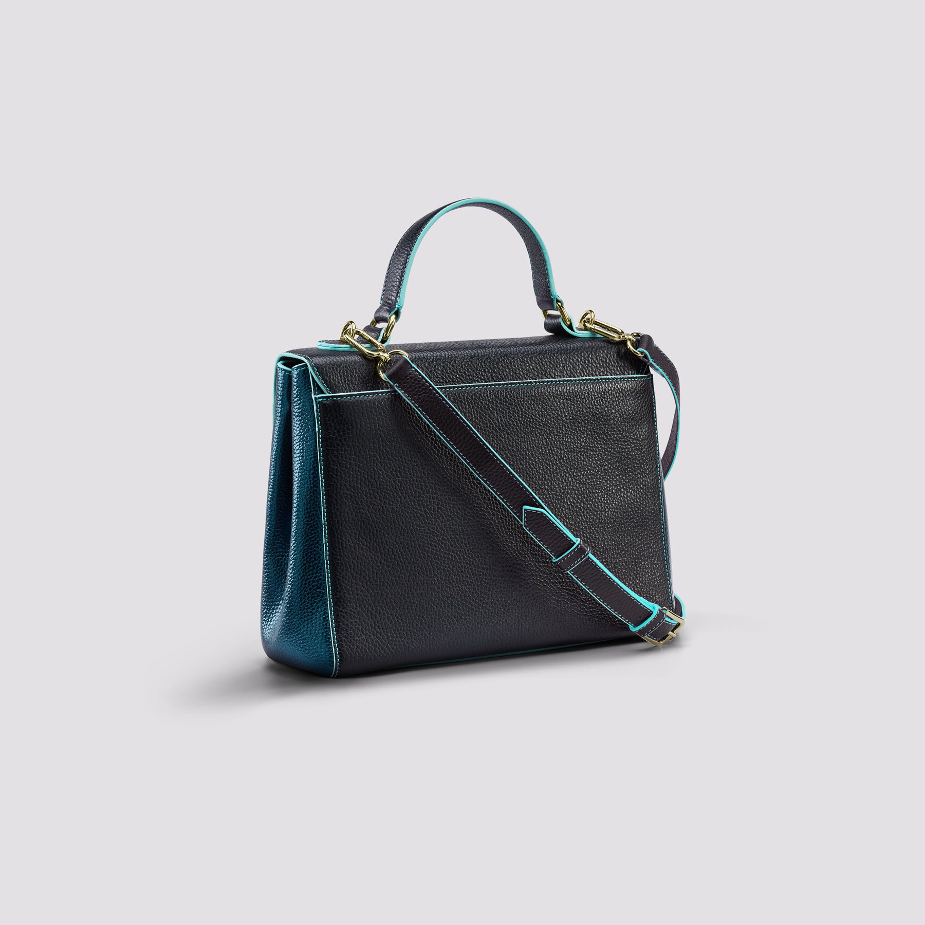Ella symboliseert 'dageraad of licht'. De uitbreidbare zijvleugels stellen u in staat om de look van uw tas te veranderen om uw silhouet en stijl aan te vullen voor elke dag of avondgelegenheid. De neutrale Ella is een subtiele versie waarbij zachte, neutrale kleuren worden gecombineerd met fluorescerende accenten in de stiksels en randen. De Ella-tas is geschikt voor een 13' laptop en is daarom een ​​perfecte tas voor werk en vrije tijd.